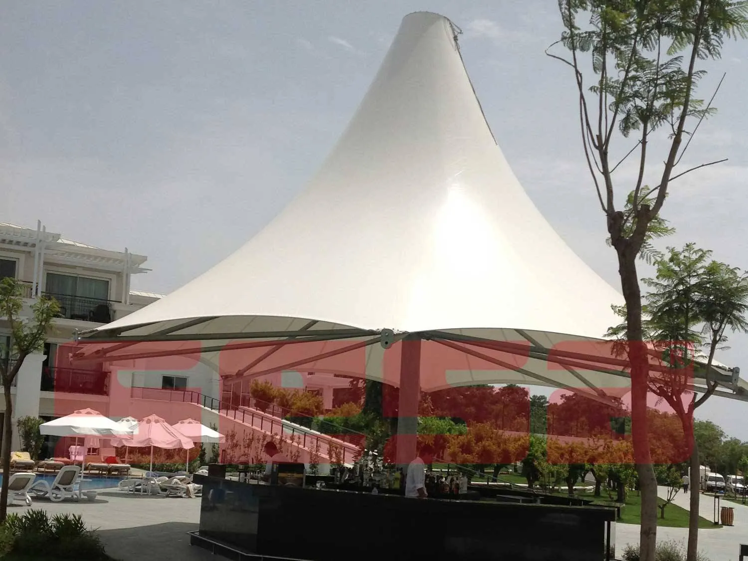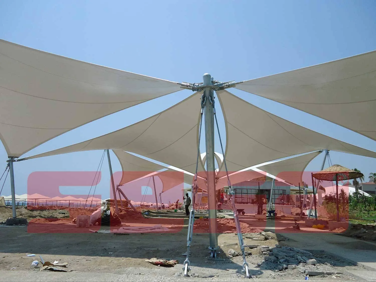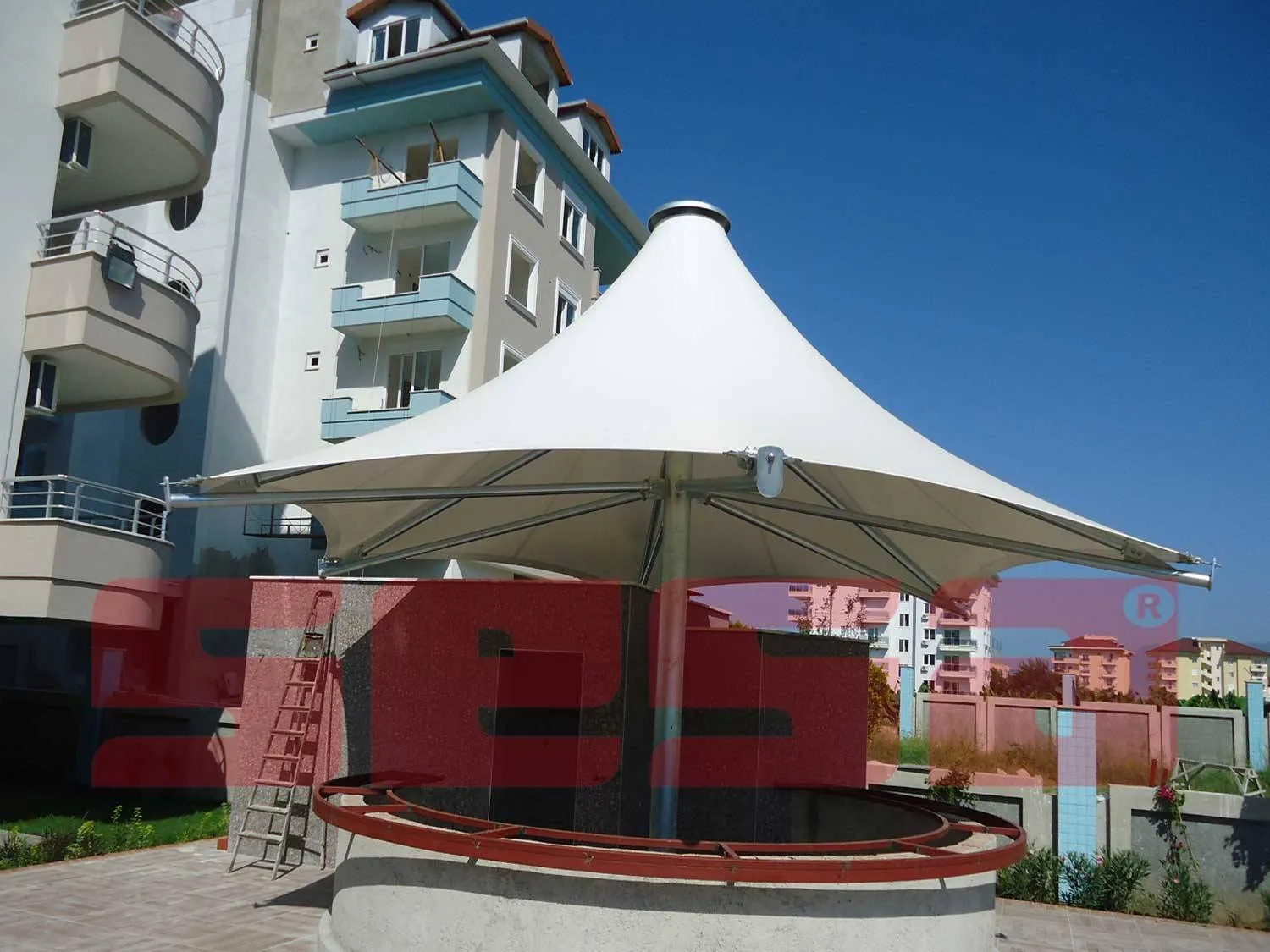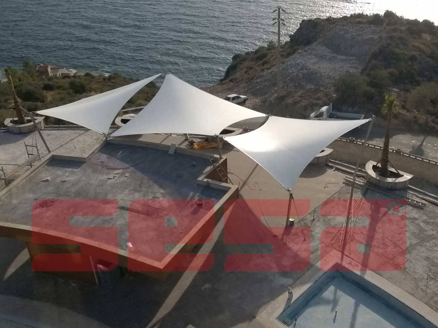 Geniş alanlar için dizayn ettiğimiz germe membran sistemli tentelerimiz çelik konstrüksiyon ve çelik halatlar sayesinde pvc branda sistemini gergiye alan uzun yıllarca kullanım kolaylığı sunun üründür.