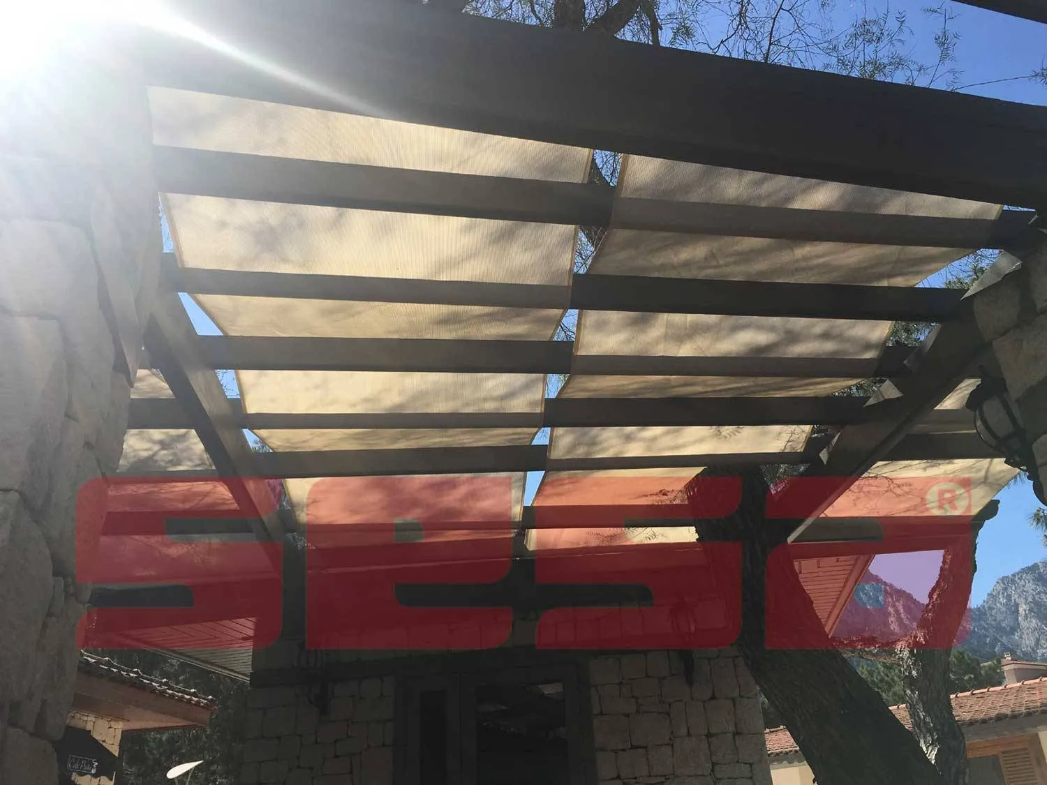 Otel restaurant vafe ve geniş alanlarda ahşap pergole ve çelik konstrüksiyon üzerine monte edilen rüzgar direnvine mukavemetli olan jut gölgelik sistemlerimiz .