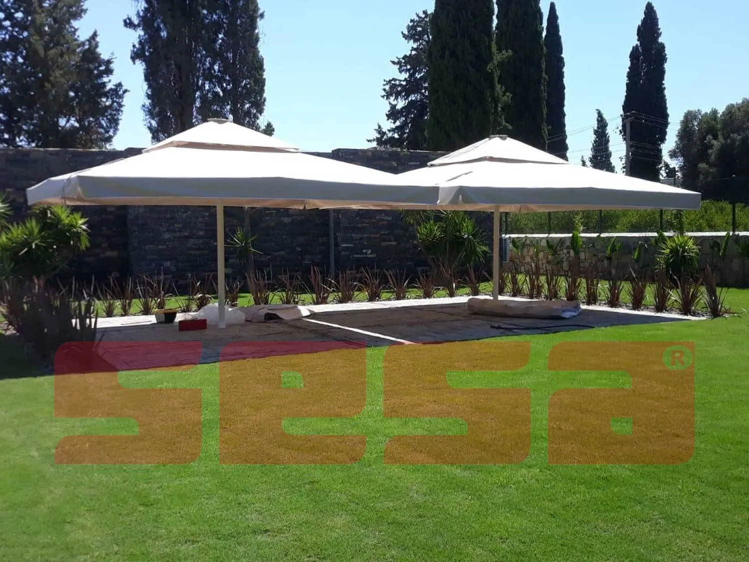 Alüminyum mekanizmalı ve ipli olup üst kumaşı akrilik veya sentetik kumaştan imal olup istenilen ebatlarda mekana özgü imal edilmektedir.Cafe restaurant otel bahçe gibi açık alanlarda kullanım kolaylığı sağlamaktadır.